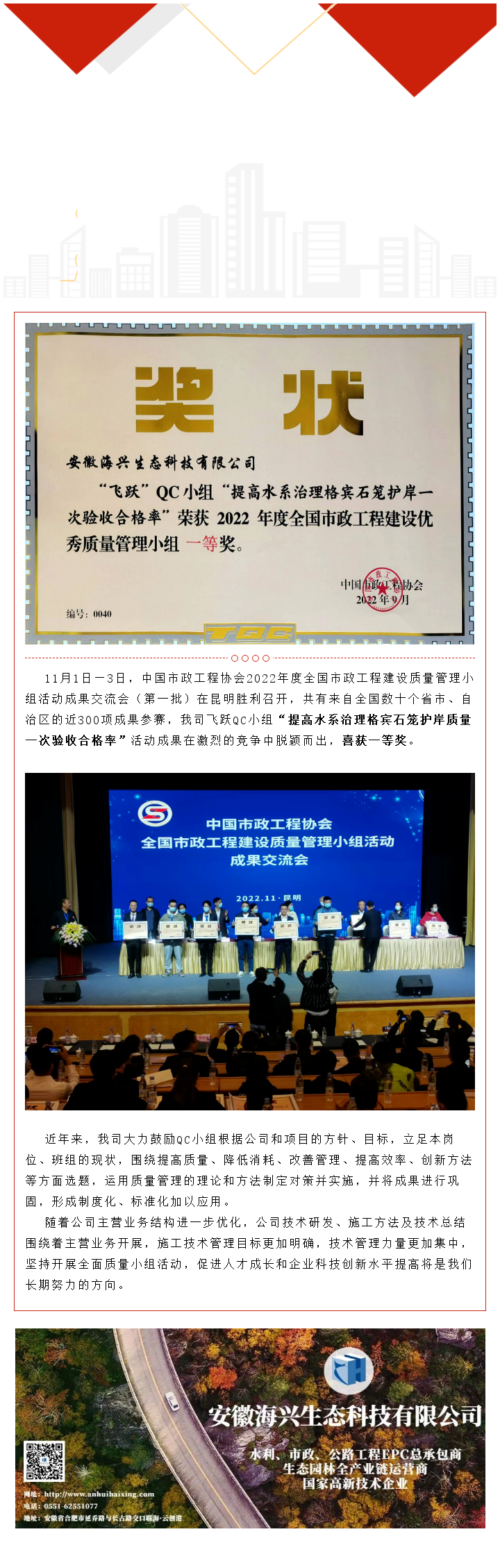 賀我司再次獲得全國市政工程QC小組活動一等獎